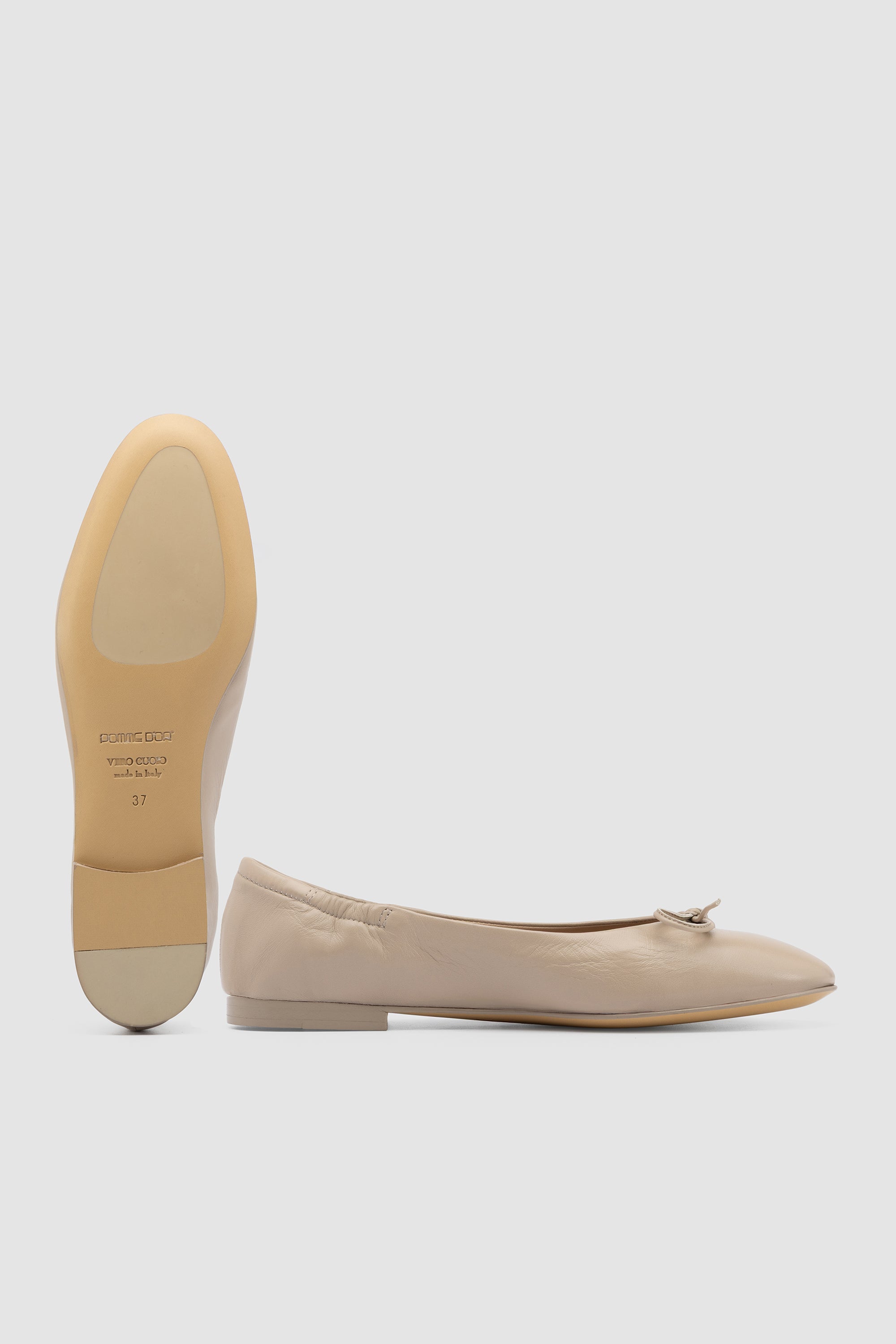 Ballerina in pelle sabbia con fiocco decorativo sulla parte frontale. Fodera in pelle e suola in cuoio con inserto in gomma.