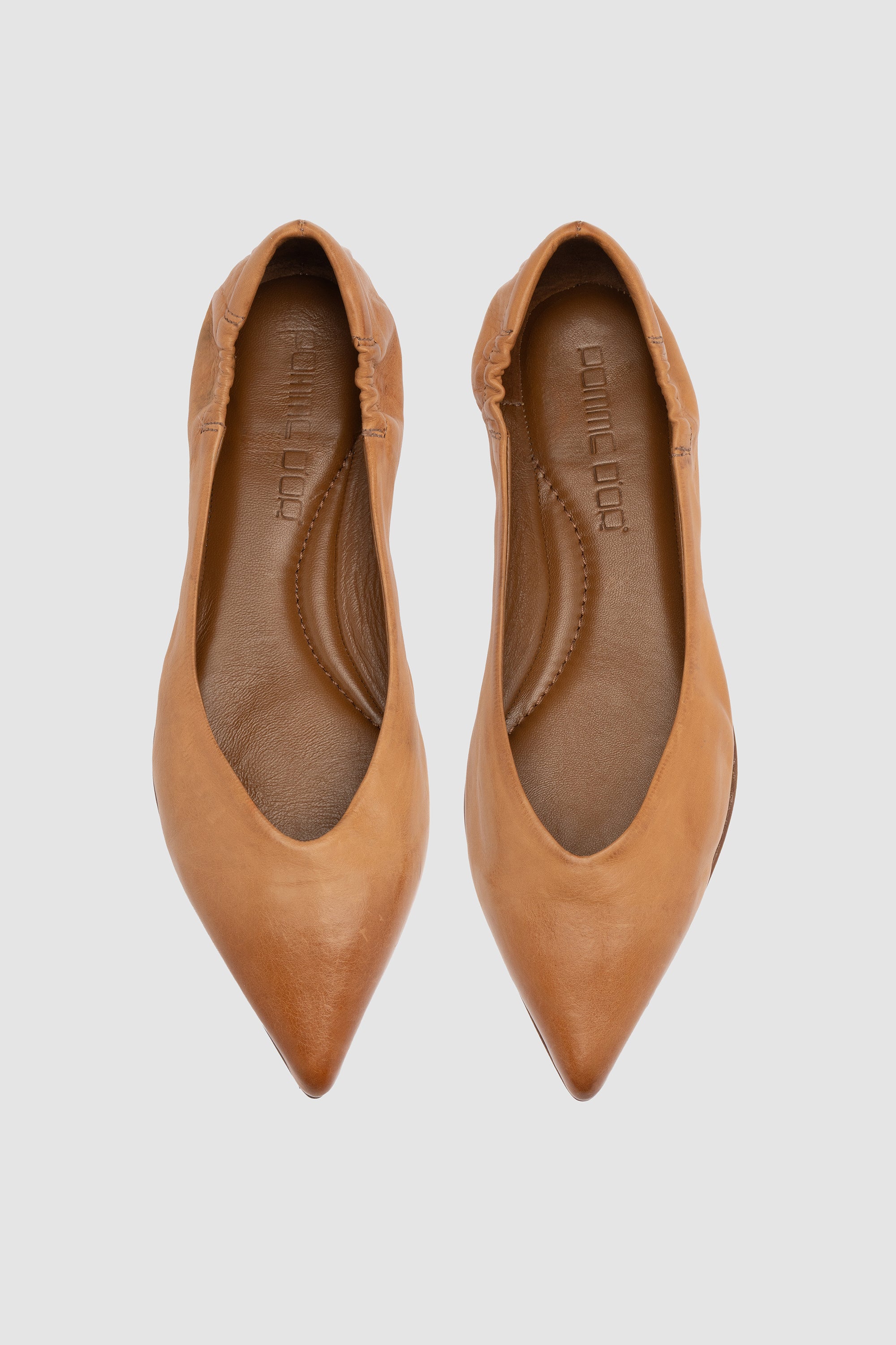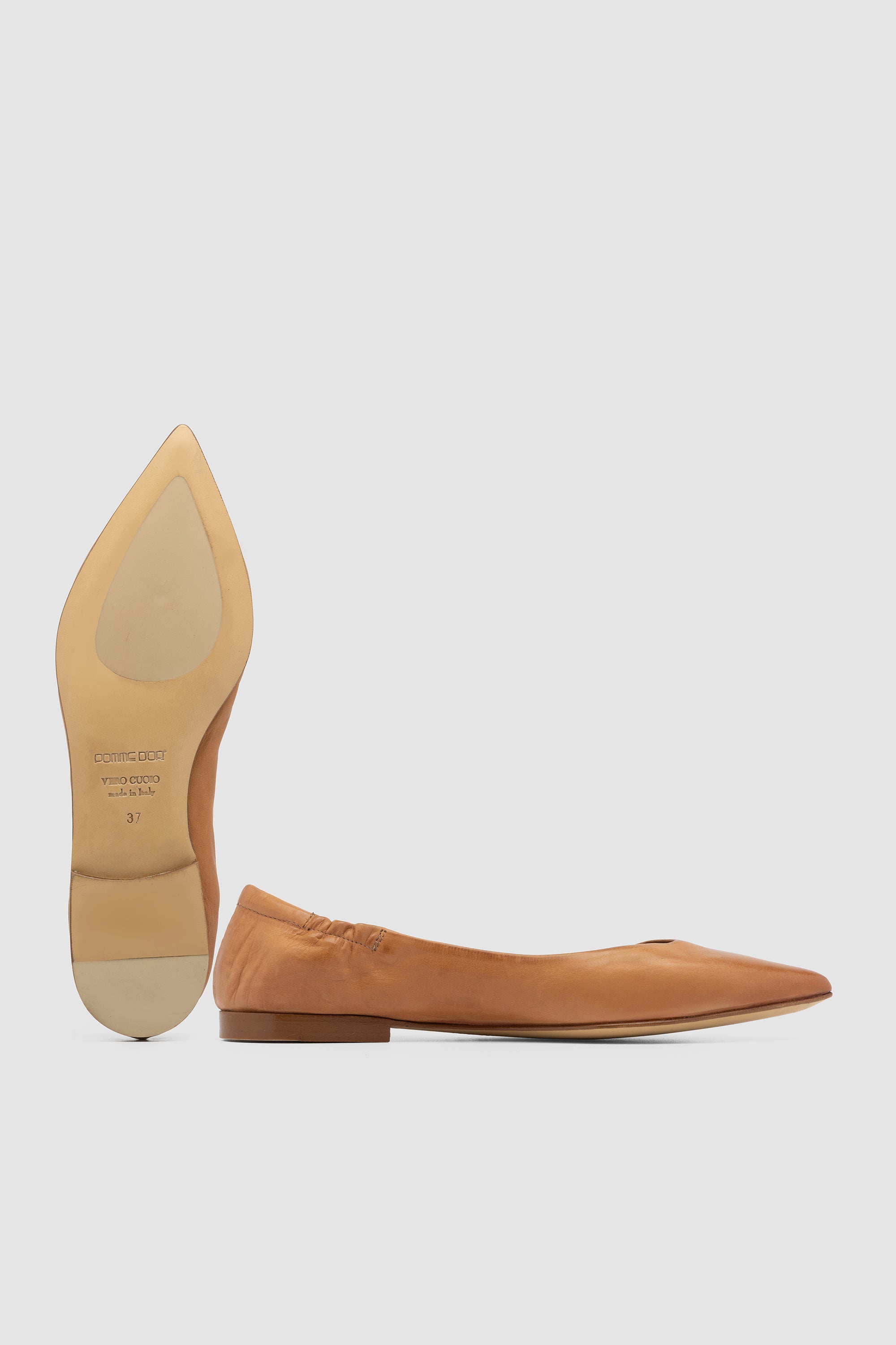 Ballerina in pelle Nature Toffee con punta affusolata. Fodera in pelle e suola in cuoio con inserto in gomma.