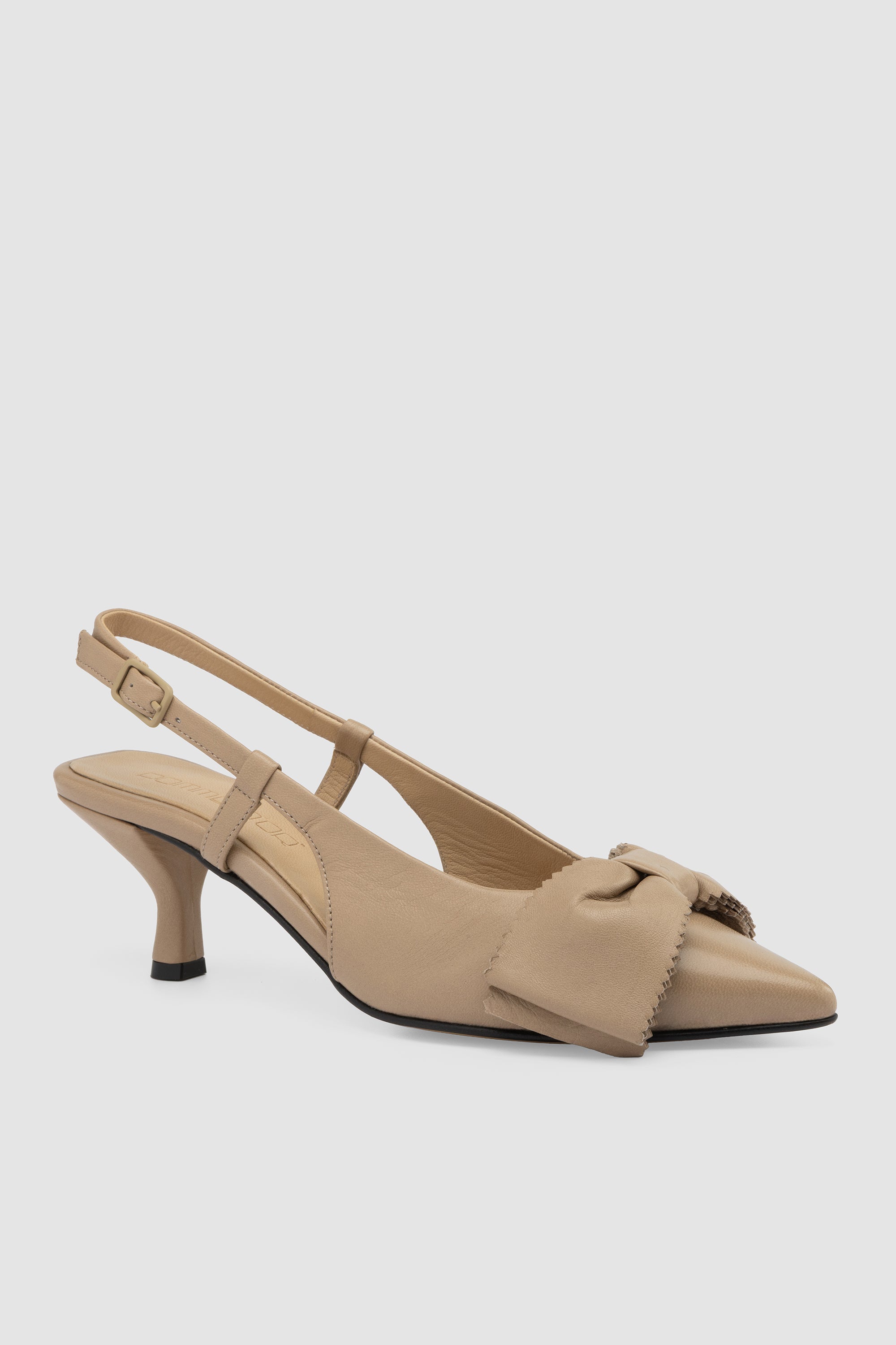 Slingback in pelle Glove Soft Mocha con chiusura laterale con fibbia e un fiocco decorativo sulla parte frontale. Fodera in pelle e suola in cuoio con inserto in gomma.