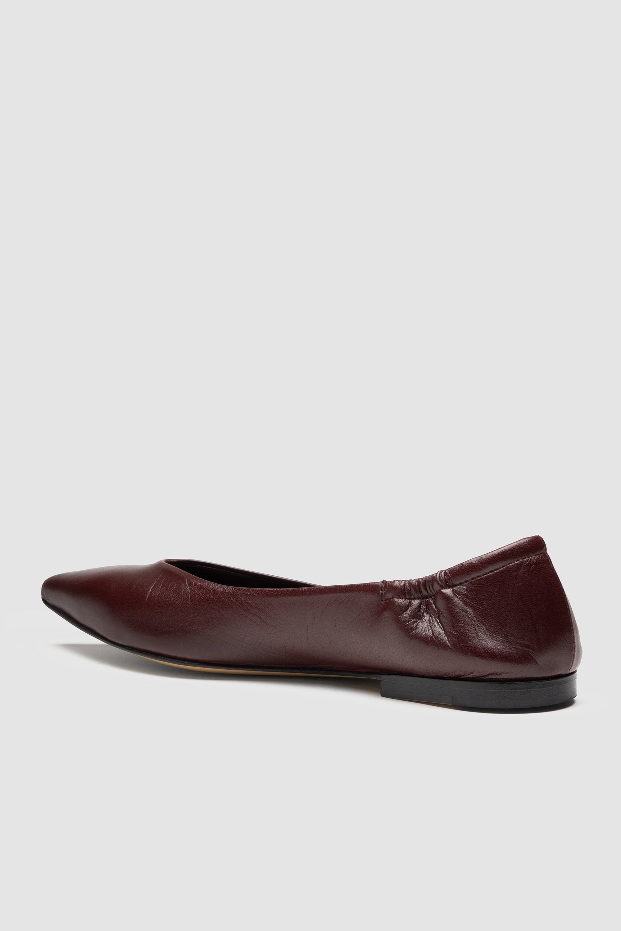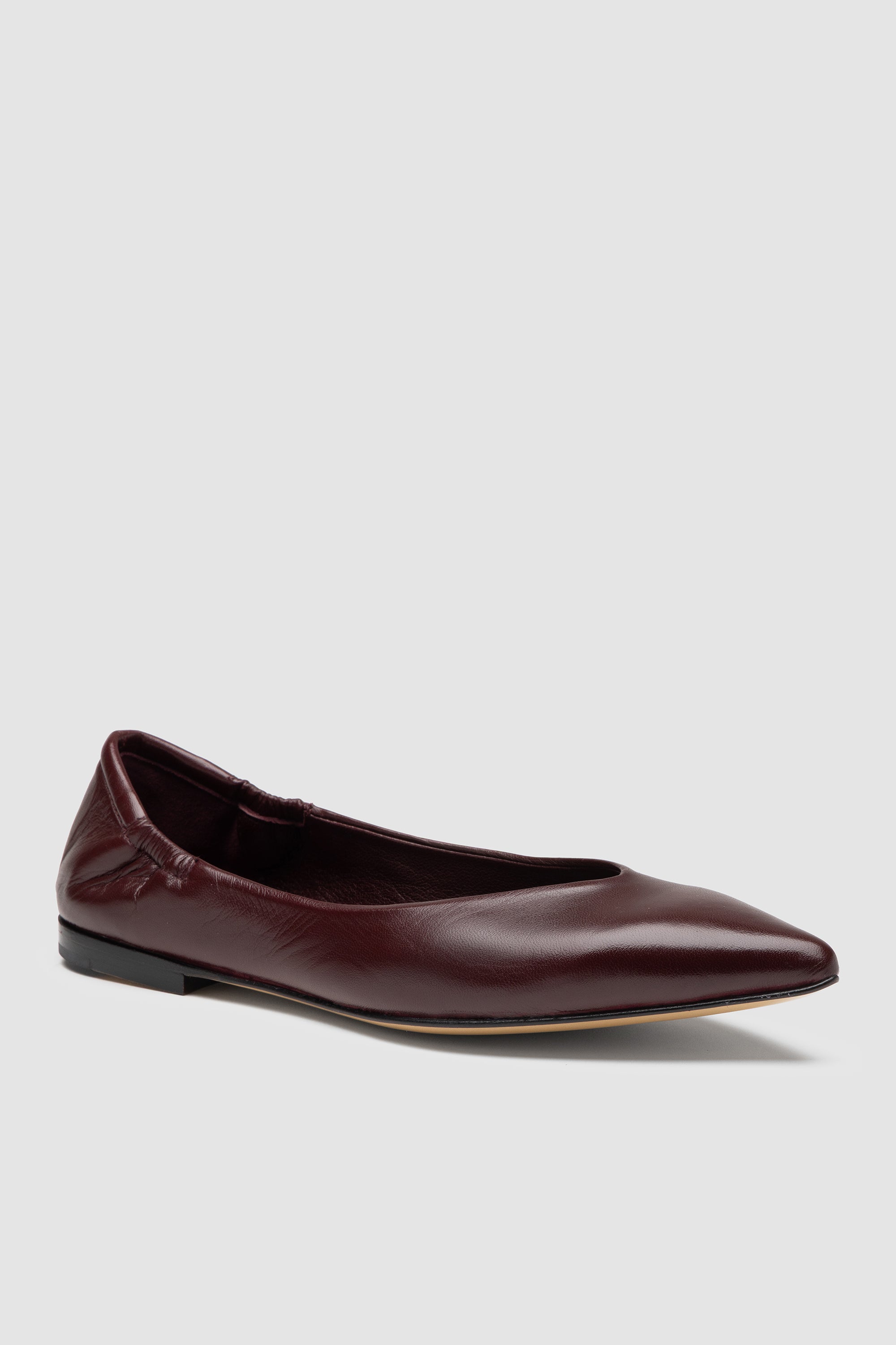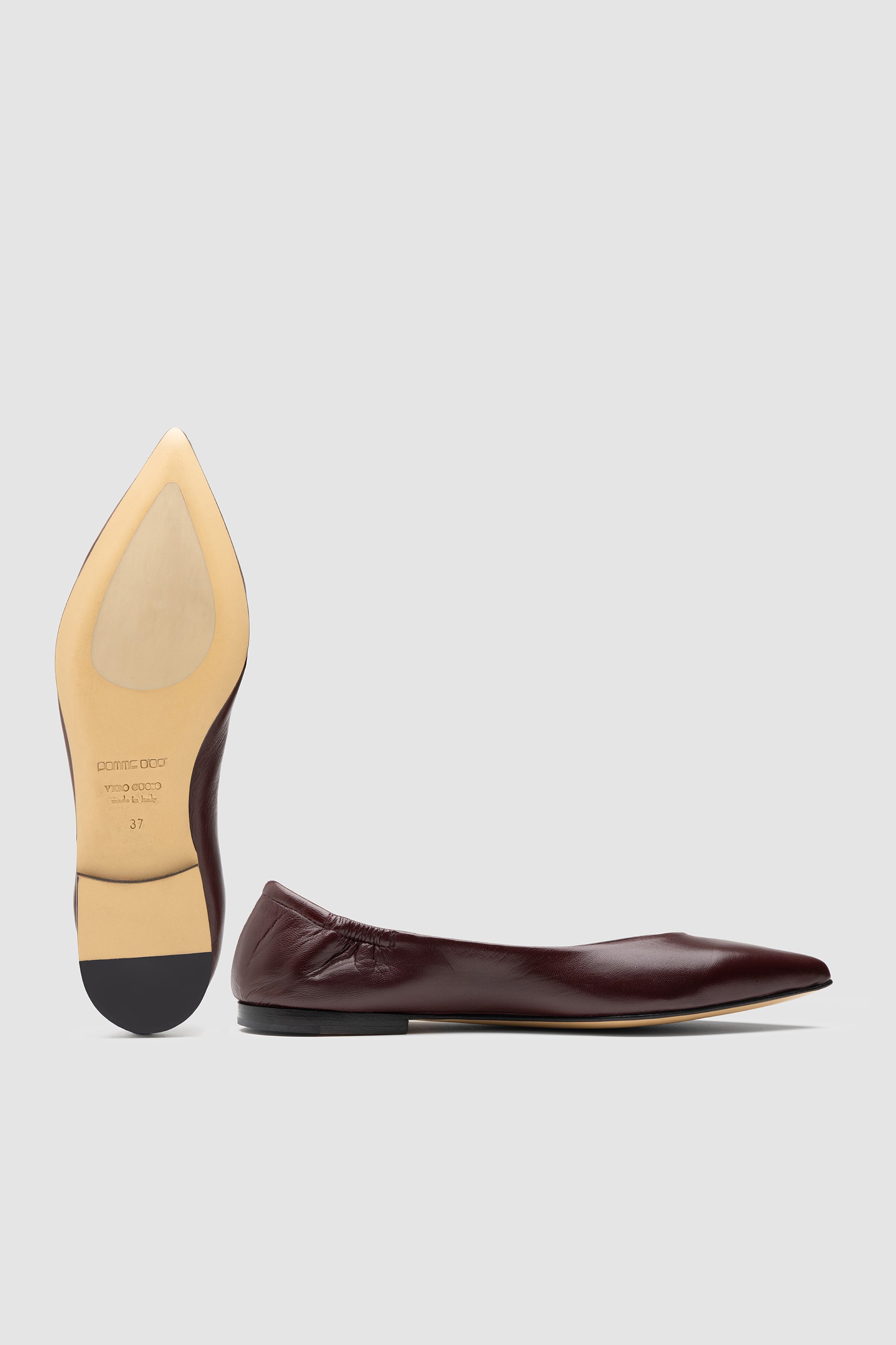 Burgundy nappa Ballerina flat shoe, with soft leather lining and leather sole with rubber insert.