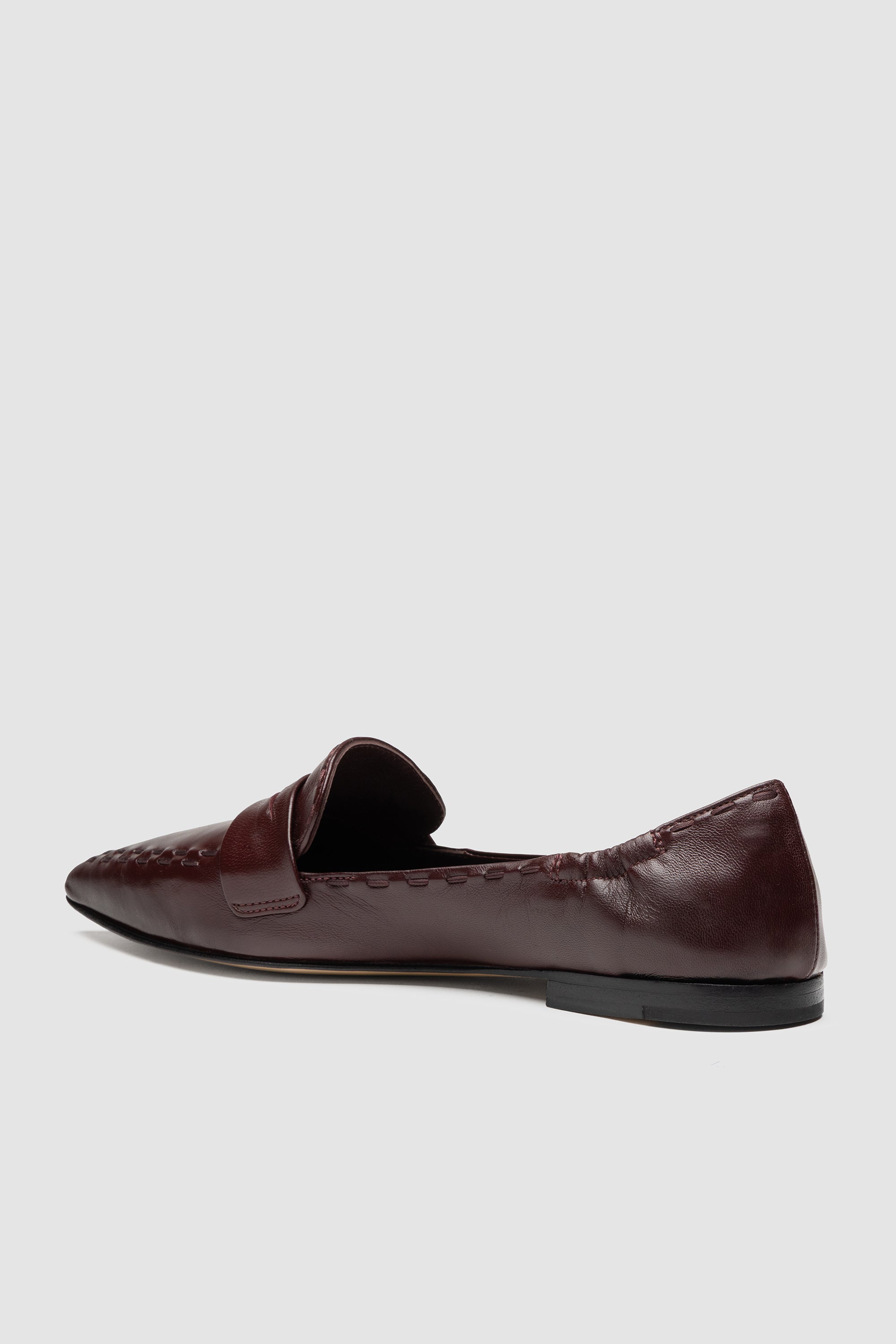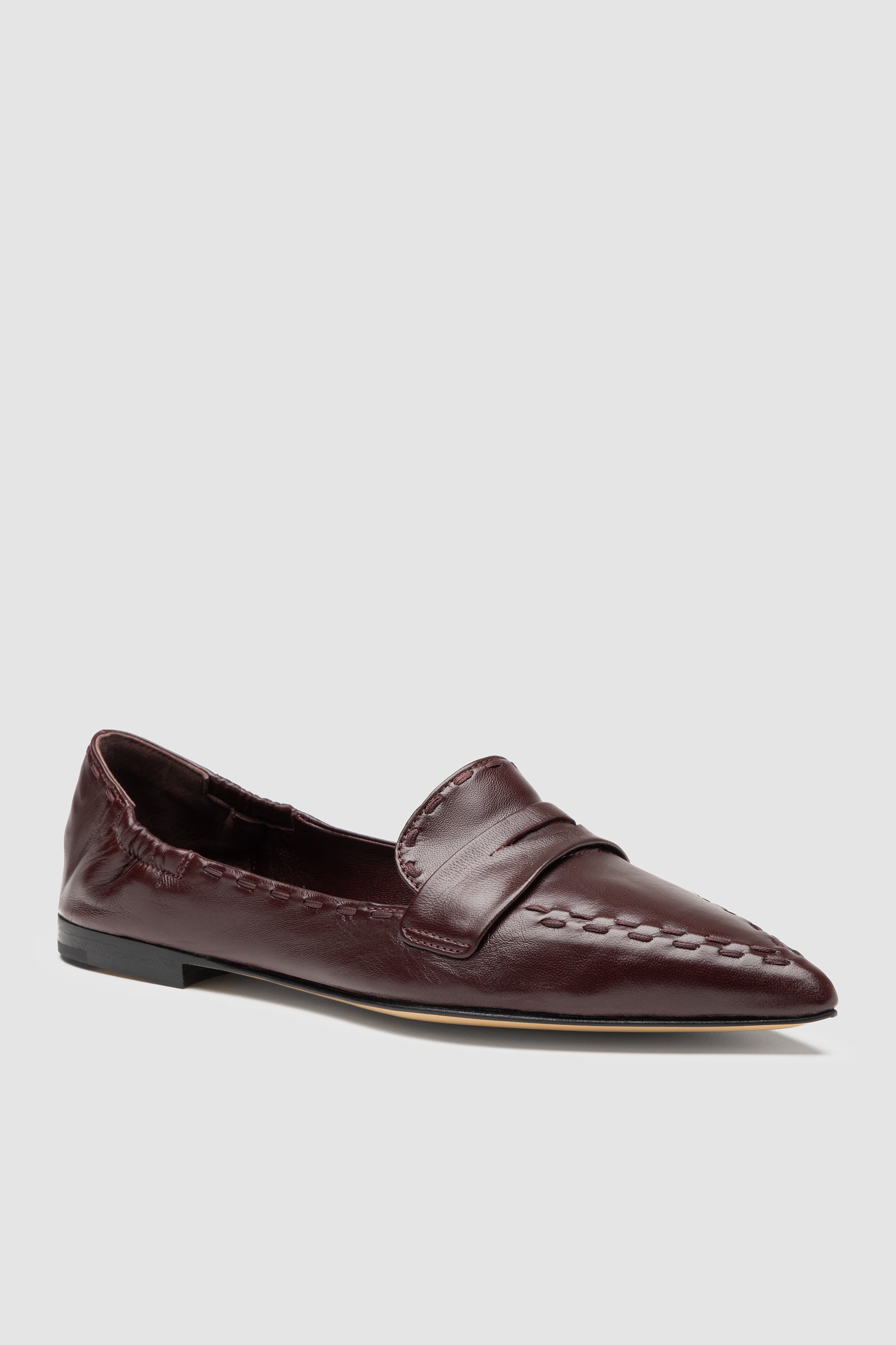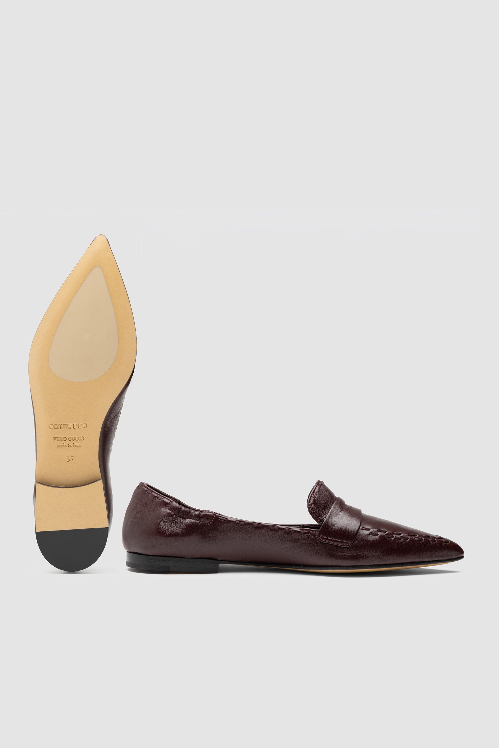 Soft nappa flat shoe, with soft leather lining and leather sole with rubber inserts.