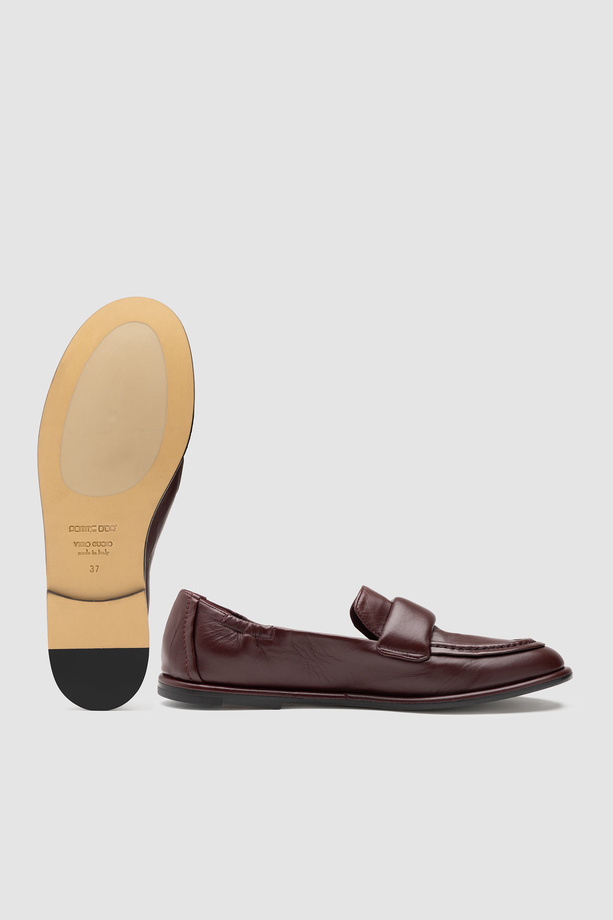Nappa leather flat loafer, with soft leather lining and leather sole with rubber inserts.