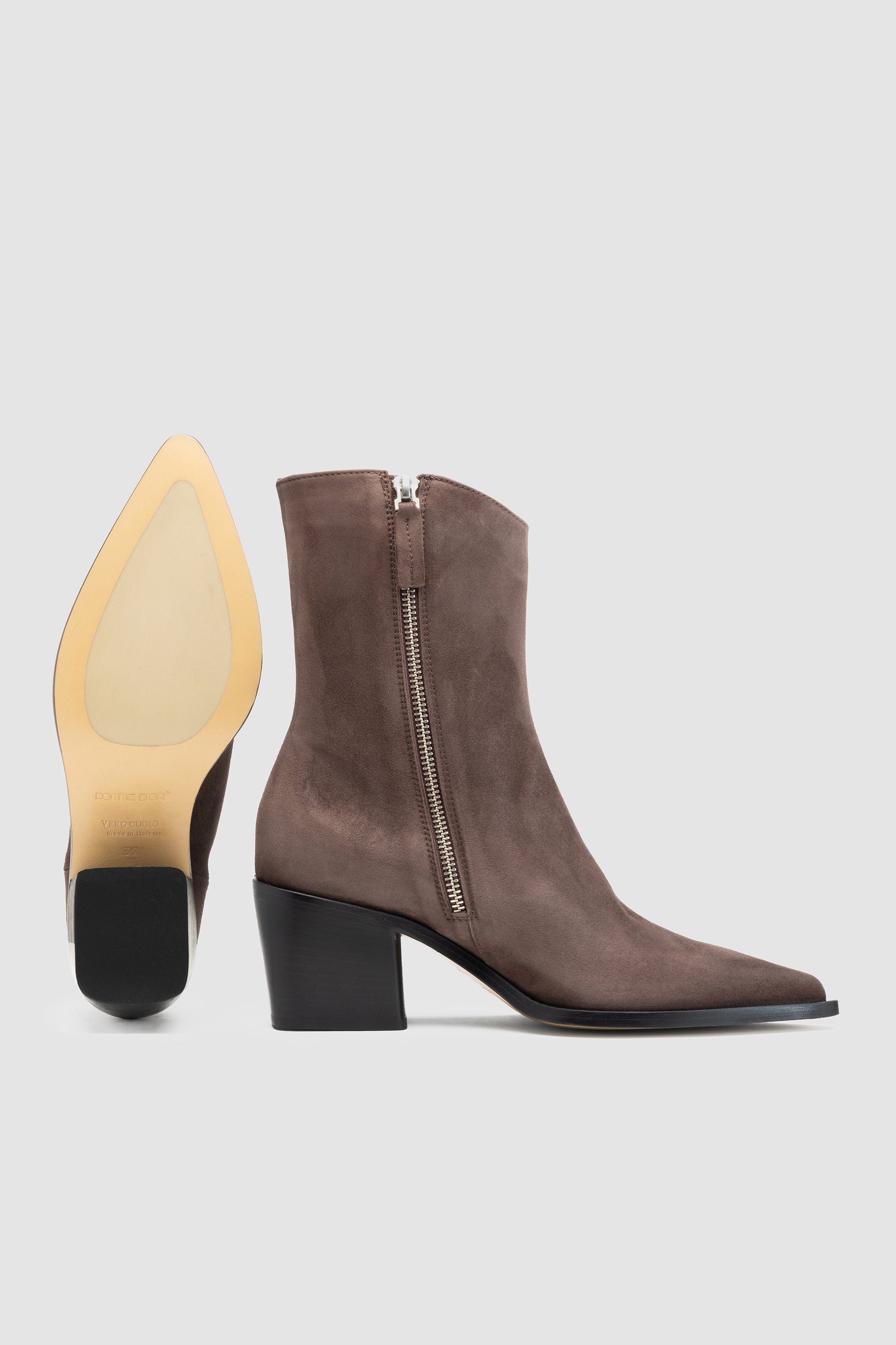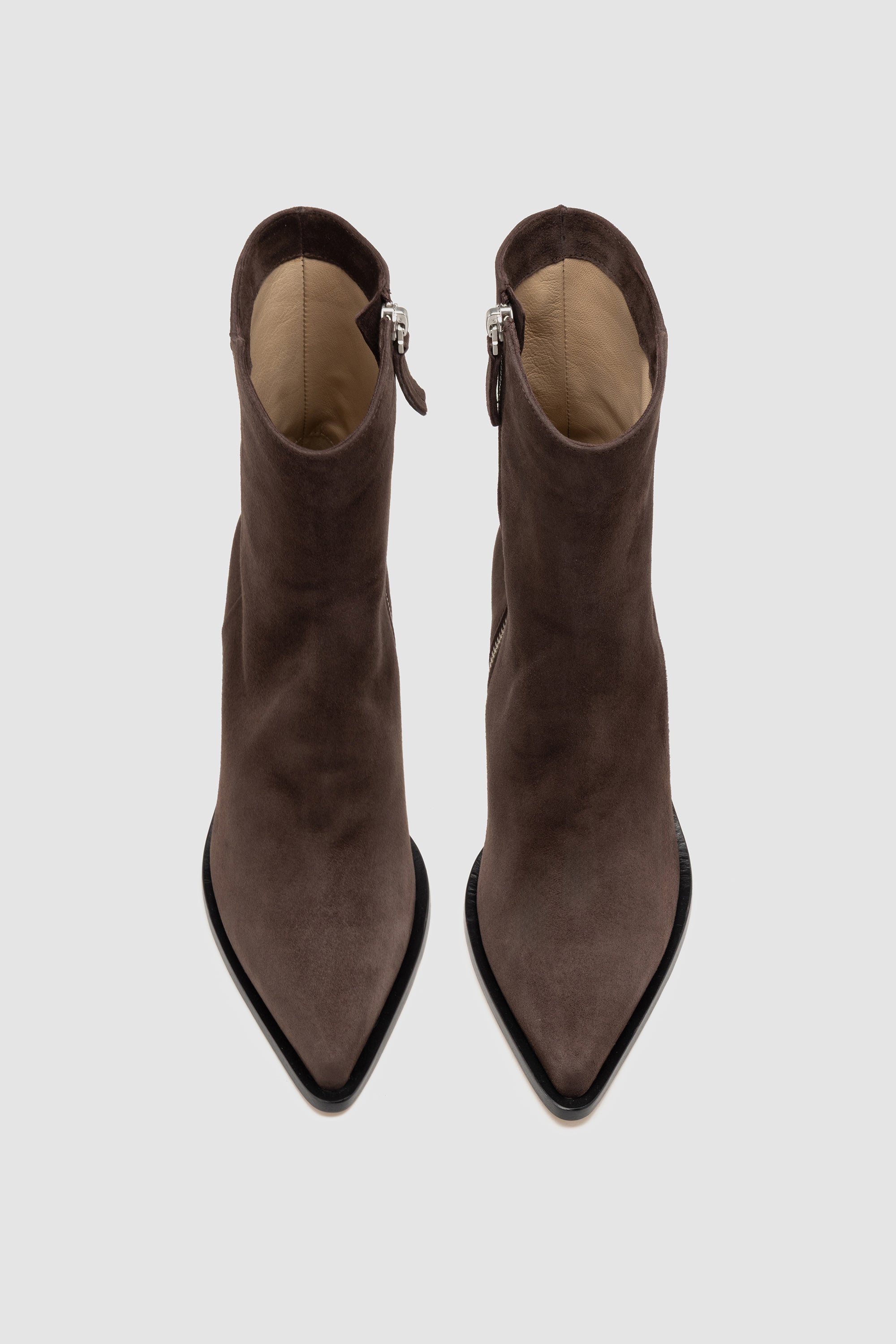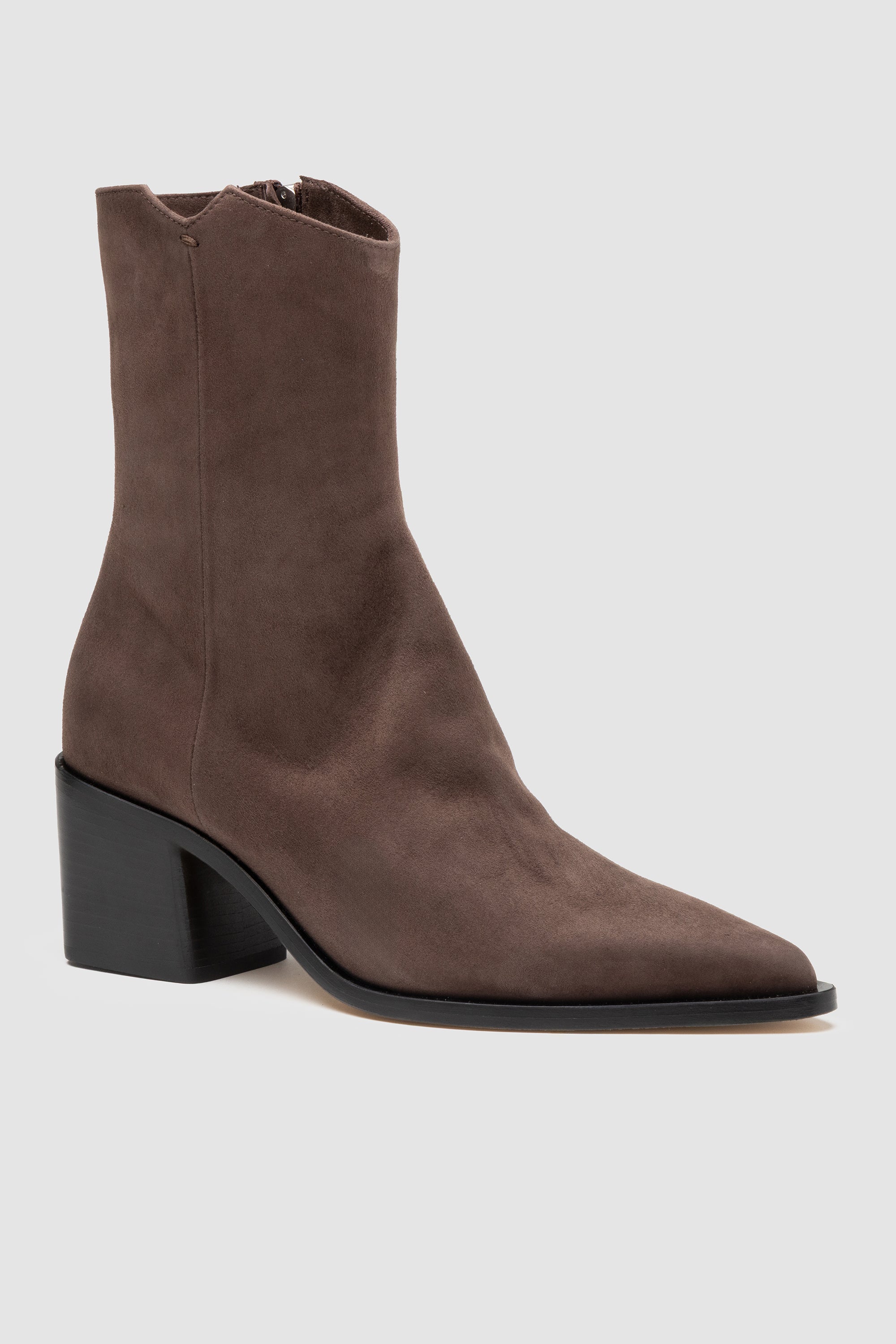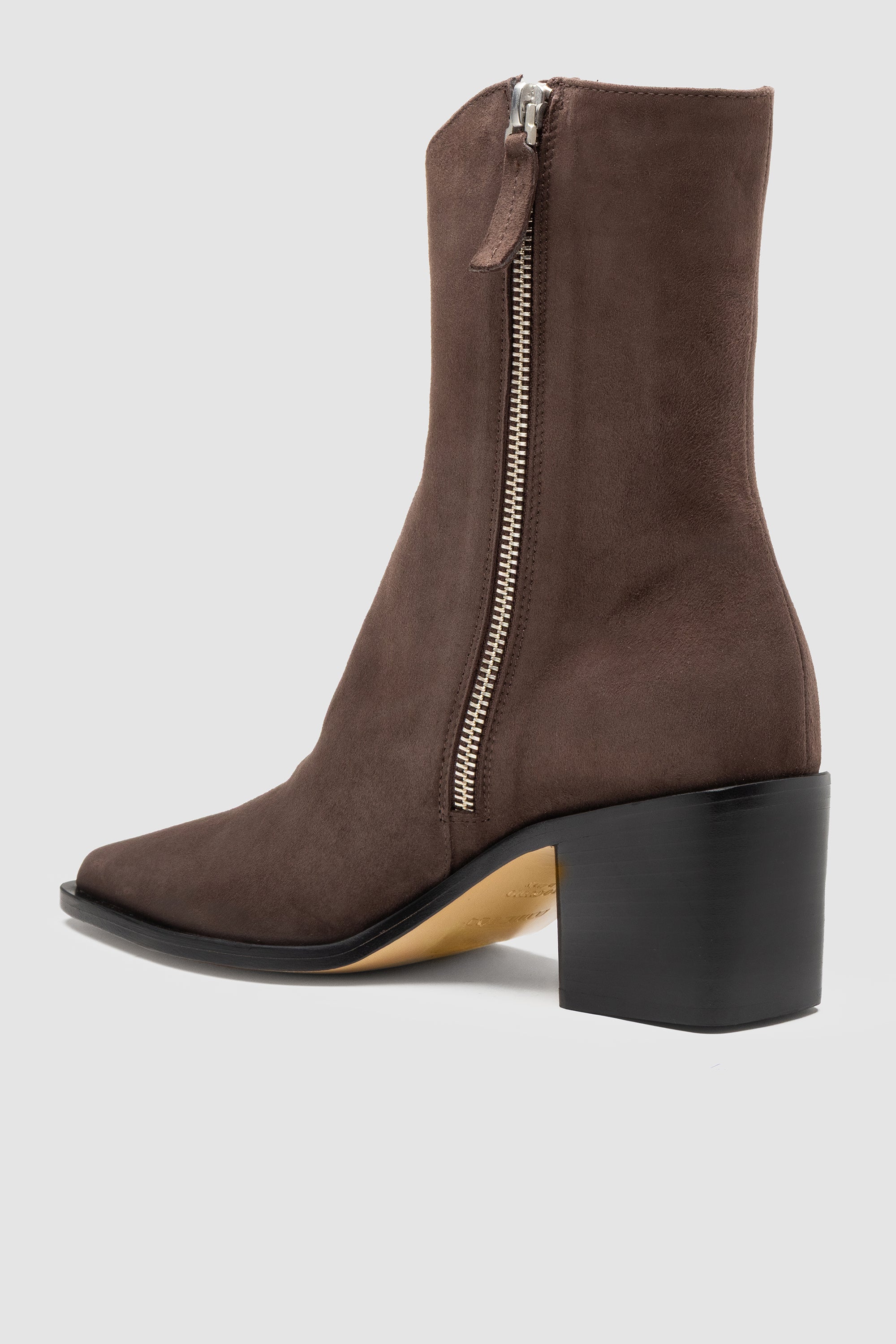 Brown suede boot, featuring inner side zip closure, soft leather lining and leather sole with rubber inserts.