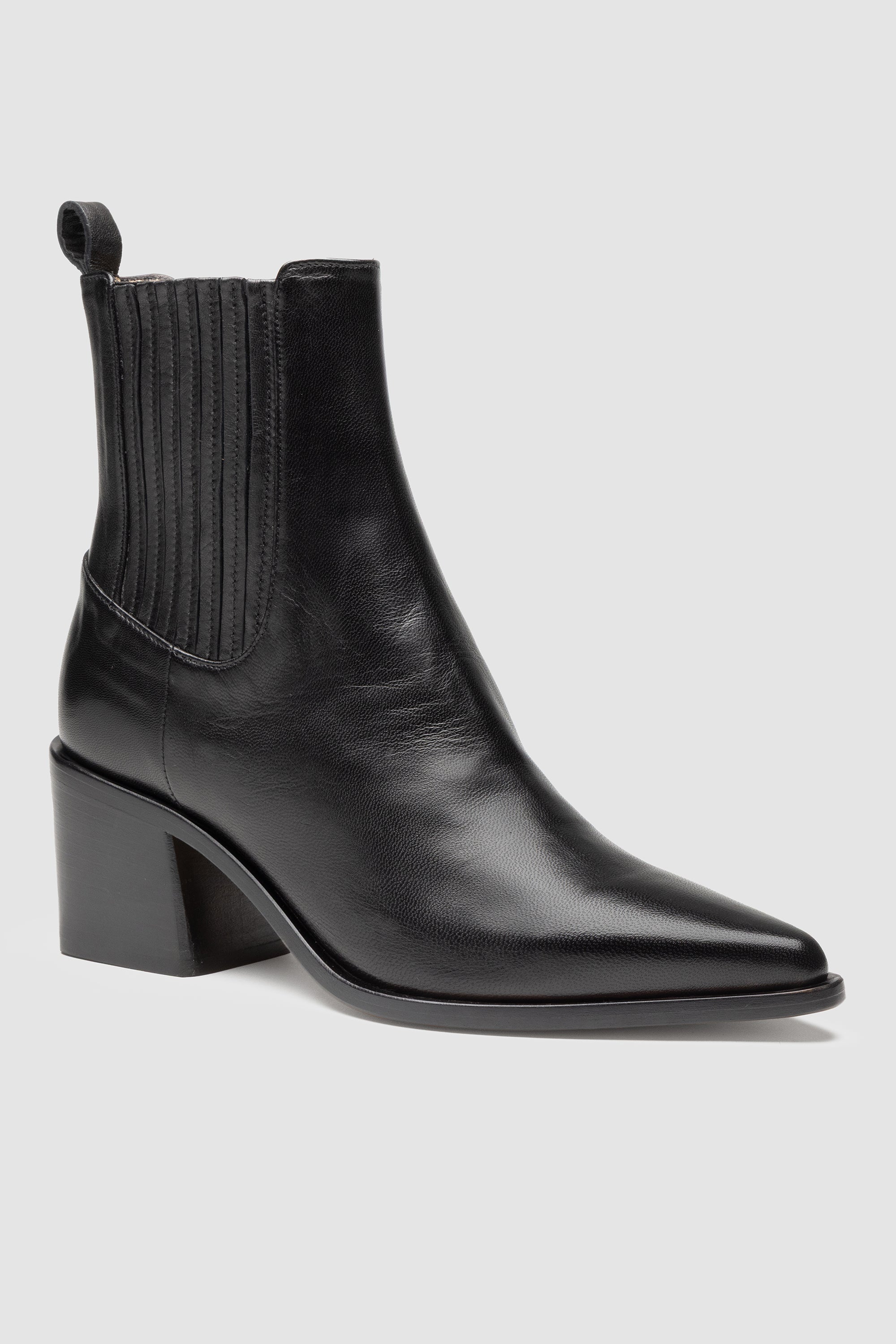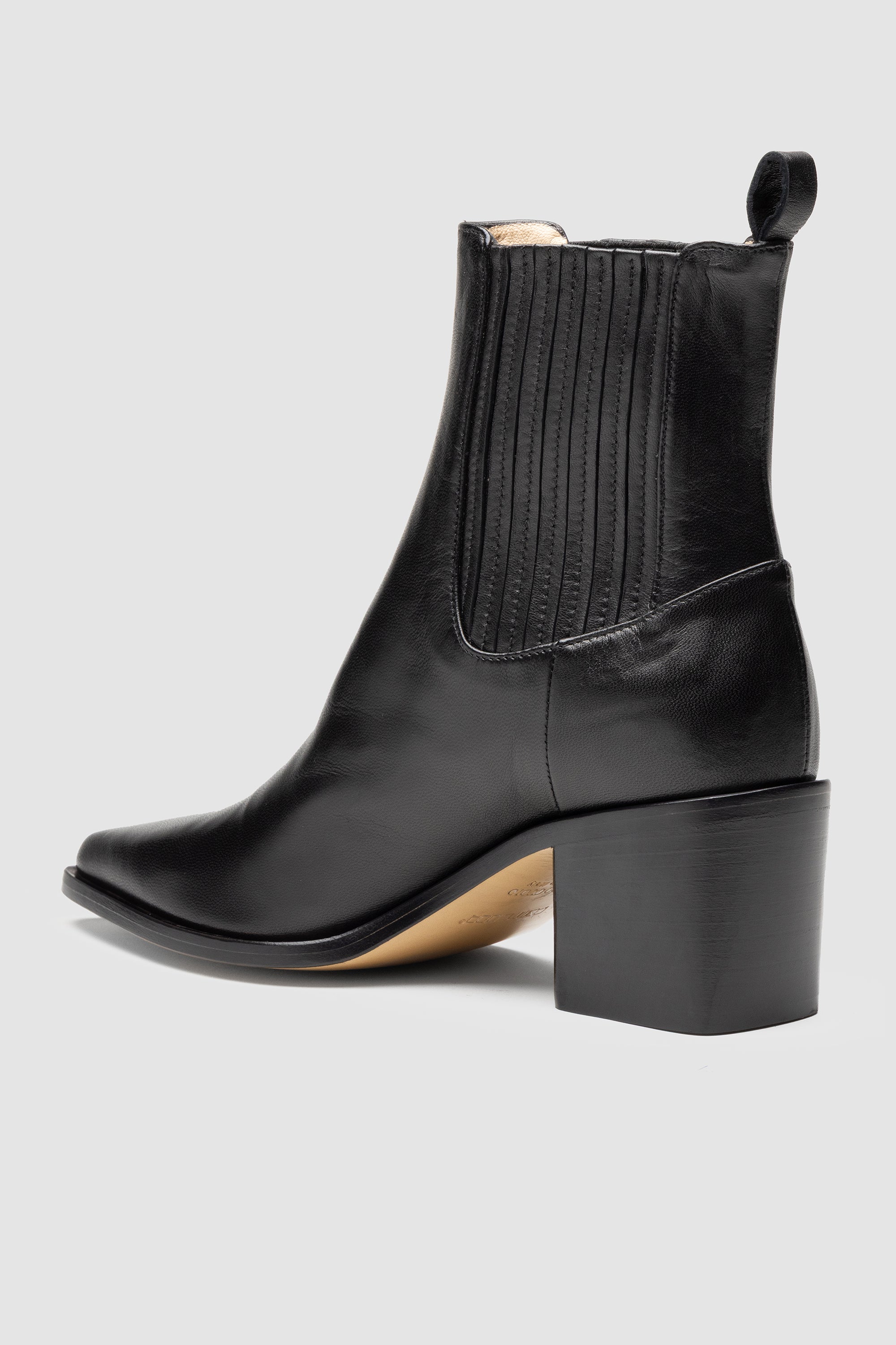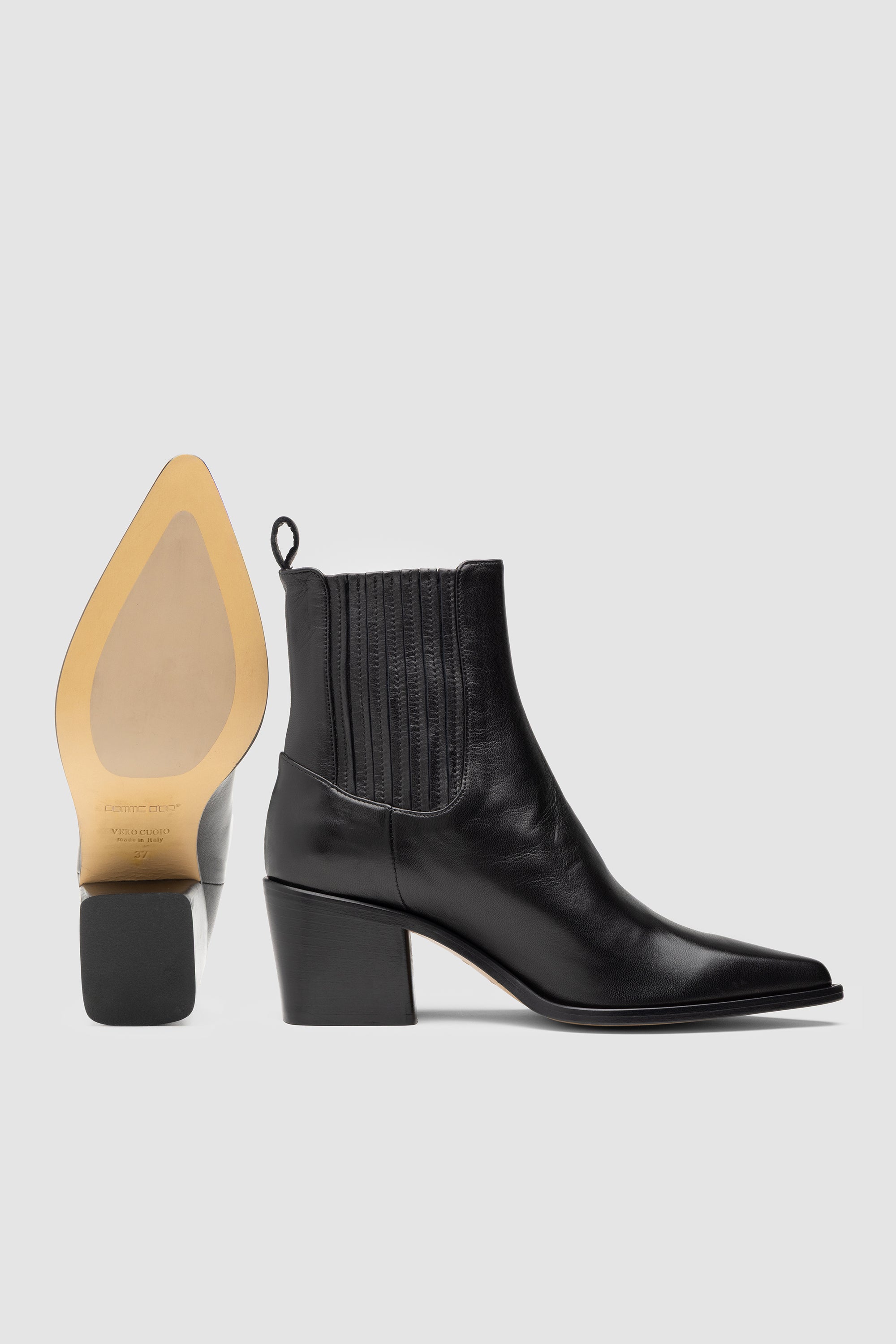Soft nappa ankle boot with side stretch panels, soft leather lining and leather sole with rubber inserts.